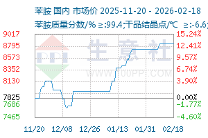 | 苯胺质量分数/% ≥:99.4;干品结晶点/℃ ≥:-6.6;水分质量分数/% ≤: 0.1 | 山东金岭 | 8000元/吨 | 8000 | 0 | 2026-02-18 | |